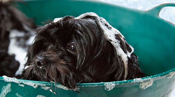 A primeira opção é a limpeza com água e sabão (xampu com o qual o cão já esteja acostumado ou algum neutro para cães). A limpeza pode ser feita com paninhos do tipo “perfex” ou, se estiver calor, banho normal. O banho deverá ser realizado no máximo uma vez por semana, ou a cada 10 a 15 dias. O cachorro deve ser bem seco com toalha, secador ou no sol. Atente para água no ouvido, para evitar otite.