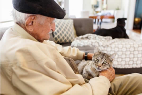 Desde logo têm o seu menor porte como vantagem e, à semelhança dos cães, são animais sociais e capazes de estabelecer laços de afetividade com os seus tutores. Mesmo que neles predomine a sua autonomia e sejam menos dependentes do que os cães, na verdade é também por essa sua capacidade que o gato é por excelência o animal de companhia das pessoas idosas. Por outro lado, são considerados uma potencial fonte de companhia sobretudo para pessoas que vivem sós, situação que é muito comum na população idosa. Os gatos são também mais calmos e tranquilos sobretudo se não forem muito jovens, pois estes além de requerem cuidados adicionais e uma atenção redobrada, podem morder e arranhar, mesmo que em contexto de brincadeiras: os idosos, nesta fase têm a pele muito fina e sensível além de poderem apresentar varizes nas pernas ou nos braços. Por isso, tende-se a recomendar para os idosos a adoção e convívio com animais acima de um ano e que tenham algum adestramento básico para essa convivência.