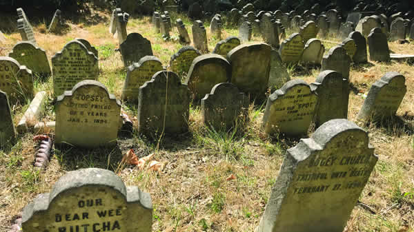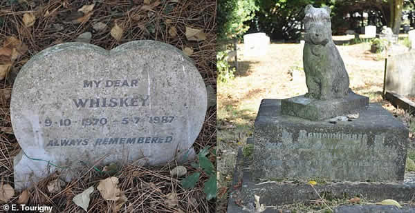 As primeiras tinham apenas o nome do bicho e datas, inscrições simples como “Querido Fluffy”, “Topsey, amigo amoroso” ou “Maude, uma velha amiga”, eventualmente precedidas pela frase “Em memória de”. Mas, a partir da Segunda Guerra Mundial, muitos proprietários começam a aparecer referidos como “mamã”, “papá” ou “tia” (20%) e os bichos ganham o apelido da família (11%).